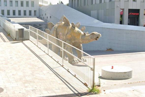 Hallado el cadáver de un hombre dentro de la estatua de un dinosaurio