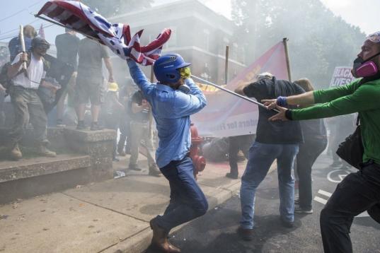 La noche anterior, los manifestantes supremacistas blancos habían protagonizado una marcha con antorchas en el campus de la Universidad de Virginia, cantando eslóganes antisemitas, lo que derivó en la convocatoria de contramanifestaciones.