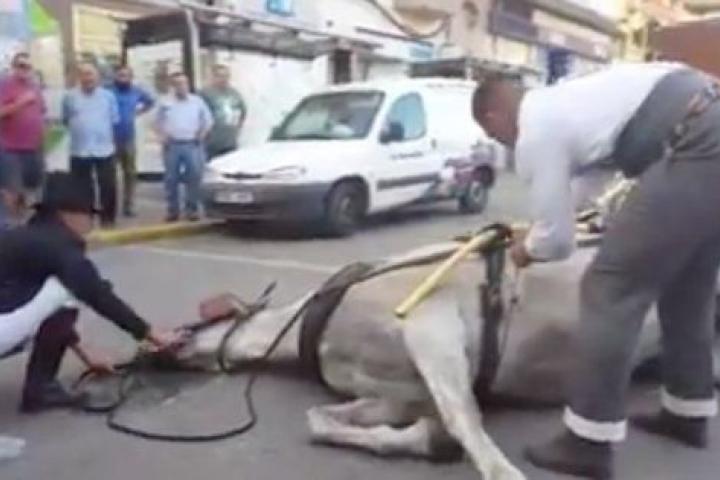 Según se aprecia en la grabación, difundida por La Línea Información, el animal prácticamente no reacciona cuando el hombre y a mujer que lo llevaban en una calesa, a la altura de la Plaza de la Constitución, tratan de ayudarlo. Le sueltan los arneses, le dan agua... pero sin mucho resultado. Las personas que estaban alrededor se muestran divididas entre los que ayudan y dicen que es un simple golpe de calor en mitad de una ola de elevadas temperaturas y los que chillan "qué poca vergüenza tenéis" o "se lo han cargado", denunciando la labor de los animales en la fiesta.