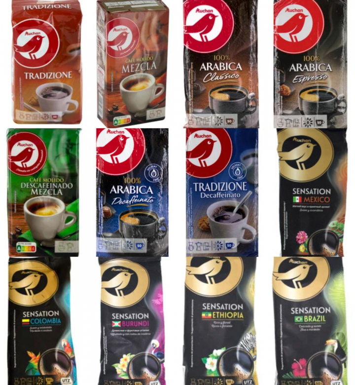 En el caso de los supermercados de Auchan, mezclan entre su extenso lineal de café su marca propia con la empresa. Toscaf S.A. para el café mezcla con granos de origen Brasil. Esta empresa, nacida en Pravia (Asturias) elabora también cafés de su marca propia. Además, en su web recalcan que es una empresa “100% sostenible” —con certificación UTZ— que cuenta con presencia en toda España y que está empezando a expandirse por Europa y el norte de África.