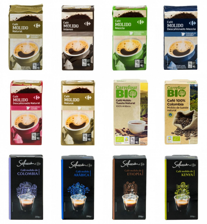 En el caso de Carrefour, tiene un solo un proveedor para sus distintos tipos de café. La cadena de supermercados francesa se sirve de los productos de Toscaf S.A para producir sus variantes natural, mezcla, descafeinado mezcla o descafeinado natural. También para las denominaciones de origen de su línea Selección de Etiopía, Kenia, Colombia o Arábica. Para su línea BIO también cuentan con el mismo proveedor.
