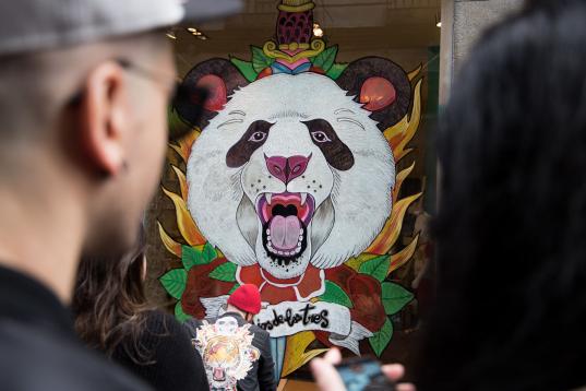 Sus colores llegaron a las persianas del mítico El Penta, con una obra del británico Charlie Sutcliffe; a la galería de arte La Ley de Snell, que acoge una exposición de la artista colombiana Ledania, quien decora estos días el cierre del local; o la tienda infantil Dada for Kids, con un oso panda gigante de El Dios de los Tres en su escaparate. Hasta la alcadesa Manuela Carmena ha tenido protagonismo en esta edición.
