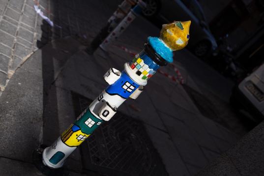 Lienzos en las paredes, en las persianas, en las ventanas, en las escaleras, en las cabinas telefónicas, en los bolardos... Lienzos en todas partes.