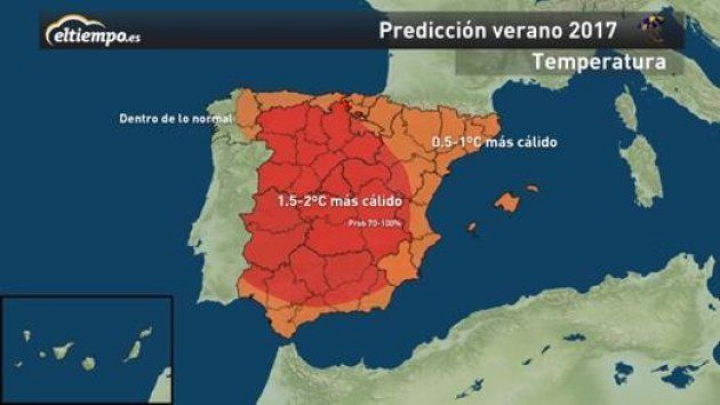 La tendencia este 2017 es de un verano más cálido de lo normal en la mayor parte del país, a excepción de Canarias donde se mantendría dentro de lo normal.