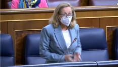 Calviño le ha contestado diciéndole que se alegra de que ya sepa que ella sí que estuvo en la sesión de la semana pasada: “El otro día en una comparecencia parlamentaria ni siquiera se había enterado de qué miembros del Gobierno estábamos aquí”.