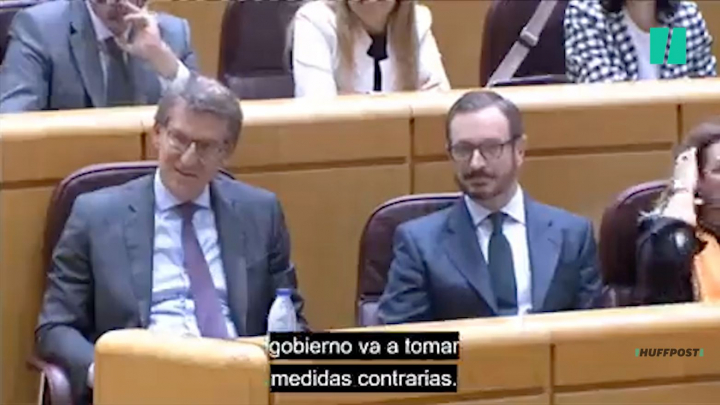 Calviño le cuenta a Maroto cómo ha sido la semana del PP y las cámaras capturan la reacción de Feijóo