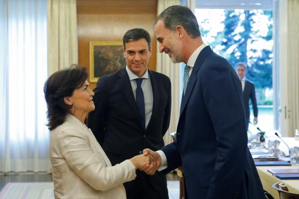 La vicepresidenta sostiene que Felipe VI “está en el presente y en el futuro de nuestro país”, "absolutamente dispuesto a servir" a sus ciudadanos.