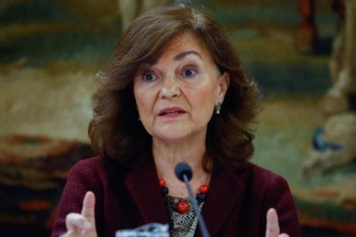 La vicepresidenta del Gobierno y ministra de la Presidencia, Relaciones en las Cortes e Igualdad, Carmen Calvo, ha considerado este lunes que el presidente catalán, Quim Torra, ha alentado a una "vía sangrienta" en relación a su planteamiento sobre la "vía eslovena" para Cataluña y ha criticado su actitud ante los incidentes protagonizados por los CDR.