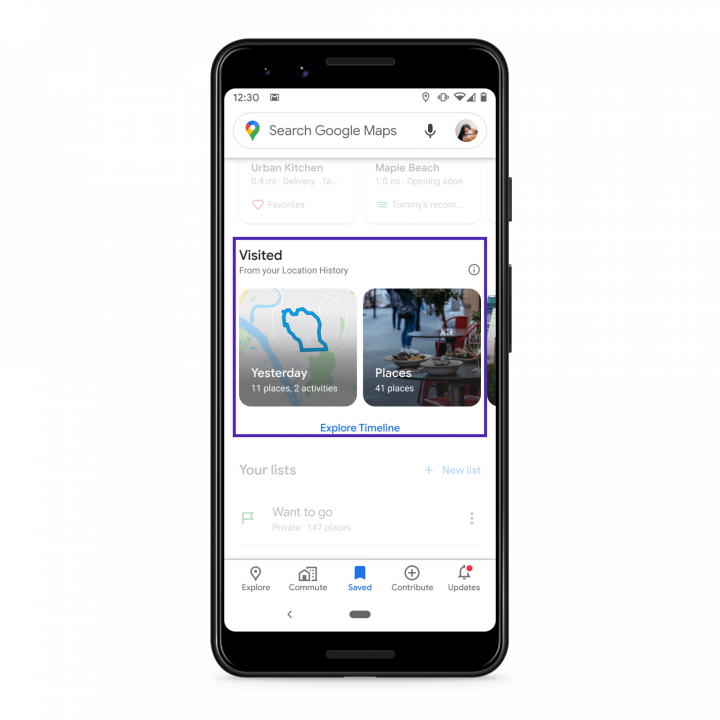 Se necesita activar la configuración del Historial de ubicaciones para que esta opción funcione y así recuerde los lugares visitados recientemente y las rutas realizadas. Se puede ver la distancia recorrida en bicicleta, andando y corriendo en los últimos días. También se pueden encontrar fácilmente esa papelería tan chula o el restaurante visitado en las últimas vacaciones. Todo está organizado según dos criterios: cuándo se visitó y dónde está.