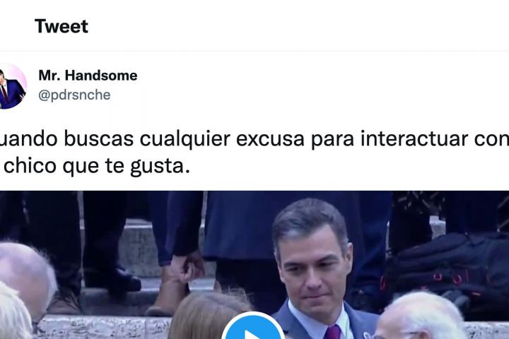Poco después, los dos se han dirigido una cariñosa sonrisa. Un gesto que ha captado Mr. Handsome, una cuenta dedicada a recuperar momentos de todo tipo de Pedro Sánchez.