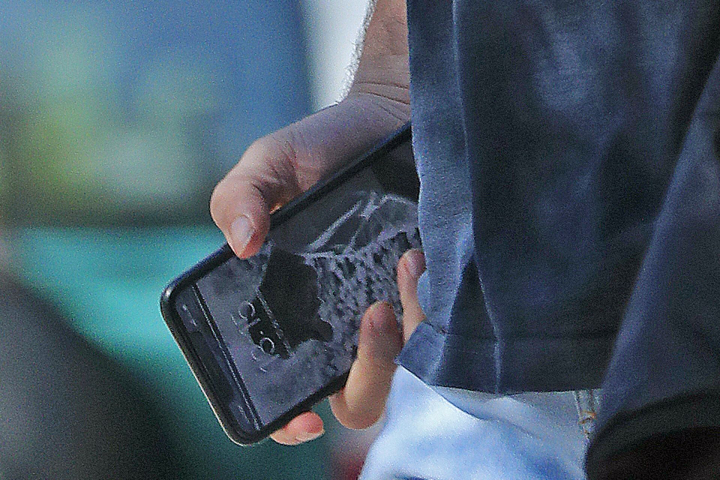 Una ha llamado especialmente la atención, porque está centrada por completo en la pantalla del teléfono móvil que llevaba en una mano. En la instantánea se puede ver perfectamente la hora a la que se hizo la foto (las 13:15) y el sorprendente fondo de pantalla del smartphone.