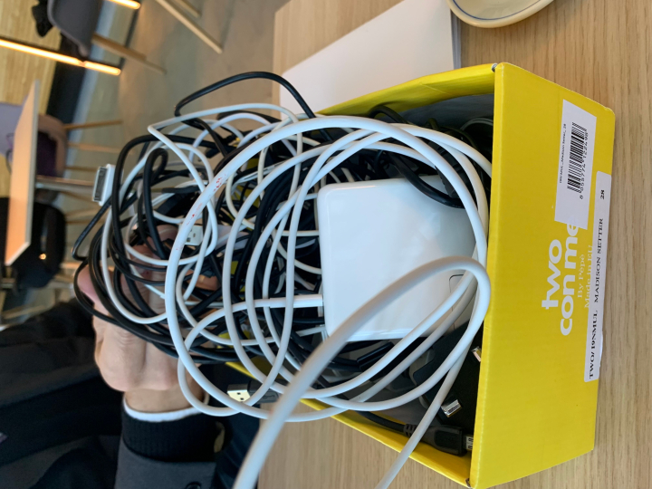 El eurodiputado popular Pablo Arias (PPE) también explica lo que supondrá la llegada del cargador único europeo. Lo hace con una imagen que ilustra a la perfección la situación que viven numerosos ciudadanos, al mostrar una caja repleta de cables y cargadores que pasarán a formar parte del pasado. “Es una muestra”, indica, porque en su interior hay una decena de los más de 30 que se han llegado a utilizar.