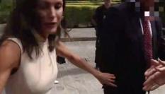 Letizia miró a quien tenía cerca: uno de sus escoltas. Y le llamó la atención. En las imágenes se puede escuchar con claridad cómo se acercó a él y le dijo: “No me has avisado del escalón y casi me mato”.