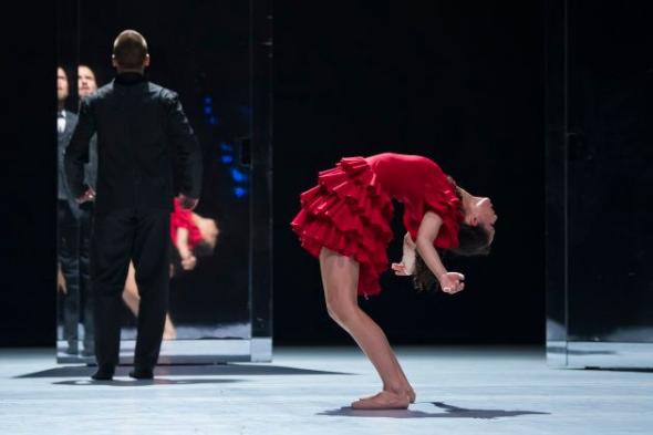 Obra con el riesgo que todo artista debe asumir. En este caso el de hacer contemporánea en escena una música que no lo es. Una música narrativa a la que, tal vez, no le vaya una coreografía sin puntas. Pensada en movimientos o cuadros, en escenas, cuya continuidad ha necesitado los insertos más bien electro-pop de Marc Álvarez que parecían cortes, más cuando la Sinfónica Verum bajo la dirección de Manuel Coves tocaba la música de Bizet (por cierto, qué bien sonaba la orquesta ¿se habrá preocupado Alex Rigola, el nuevo director artístico del teatro, por arreglar la sonoridad de la sala?)