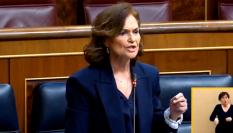 Al final de su intervención, la vicepresidenta ha lamentado que “la parte más penosa y dura” de esta pandemia no la ha cogido “pudiendo ayudar” desde el Gobierno, debido a que ella misma sufrió el coronavirus, por el que tuvo que ser hospitalizada.