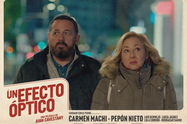 Un efecto óptico es la nueva película del guionista y director Juan Cavestany, que estará disponible en salas a partir del próximo 26 de marzo de la mano de Filmin. Protagonizada por Carmen Machi y Pepón Nieto, cuenta la historia de un matrimonio de Burgos que viaja a Nueva York con la intención de desconectar, pero nada más aterrizar se dan cuenta de que la realidad que están viviendo es muy distinta de la que creían.