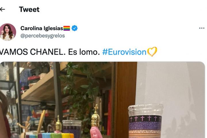 Carolina Iglesias, conocida también como Percebes y Grelos, se ha pasado Twitter con el altar que ha montado para dar suerte a Chanel en el Festival de Eurovisión 2022.