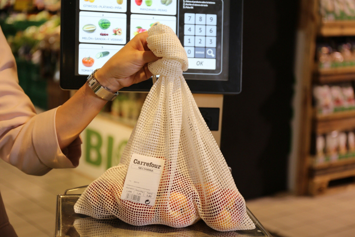 La batalla contra el plástico continúa. La cadena de supermercados de origen francés Carrefour ha dado un paso más para reducir el consumo de bolsas de un solo uso de este material con el lanzamiento de una malla de algodón en la sección de frutería.