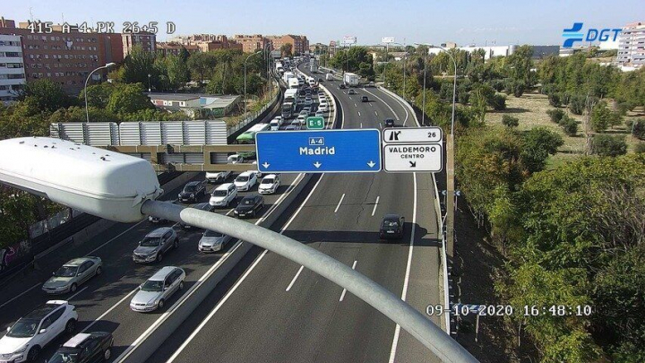 Fuentes de la Dirección General de Tráfico (DGT) han informado de que a las 14:30 horas de este viernes, a punto de comenzar el puente del Pilar, las principales complicaciones en las salidas de la capital se registraban en la A-3, a la altura de Rivas Vaciamadrid, la A-4, en Pinto, y la A-5, a su paso por Arroyomolinos.