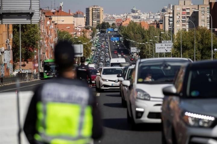 Las restricciones de movilidad por la aplicación del estado de alarma en la ciudad de Madrid y otros ocho municipios de la Comunidad de Madrid ha generado algunas retenciones en las salidas de la capital.