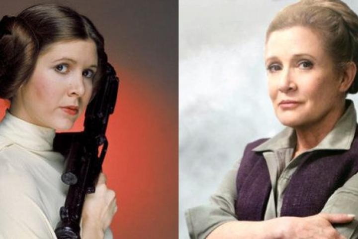 La princesa Leia en el episodio IV (izquierda) y la general Organa Solo en el VII (derecha).AOL