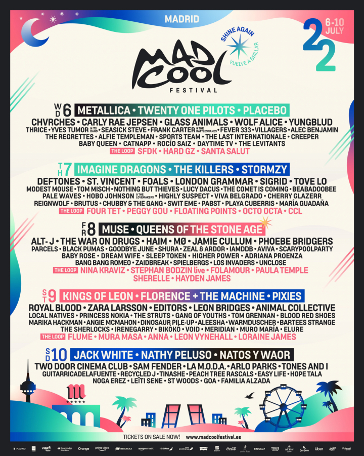 Muse, Queens of the Stone Age, Faith No More, alt‐J, The War on Drugs, MØ, Phoebe Bridgers, Black Pumas, Goodbye June, Shura, Aviva, Scarypoolparty, Baby Rose, Bang Bang Romeo, Spielbergs y Los Invaders.