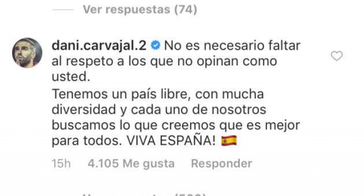 La polémica ha llegado a tal punto que hasta el futbolista del Real Madrid Dani Carvajal ha respondido a la humorista en los comentarios de Instagram. Y se ha mostrado extremadamente crítico con ella.