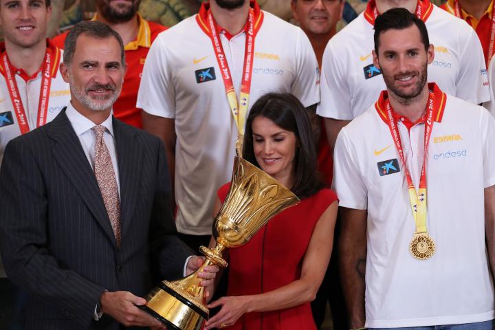La celebración de la Selección española de baloncesto de su victoria en el Mundial de China llevó a los jugadores este lunes hasta La Zarzuela, donde fueron recibidos por los reyes Felipe y Letizia, un momento que dejó un curioso gesto entre ambos .