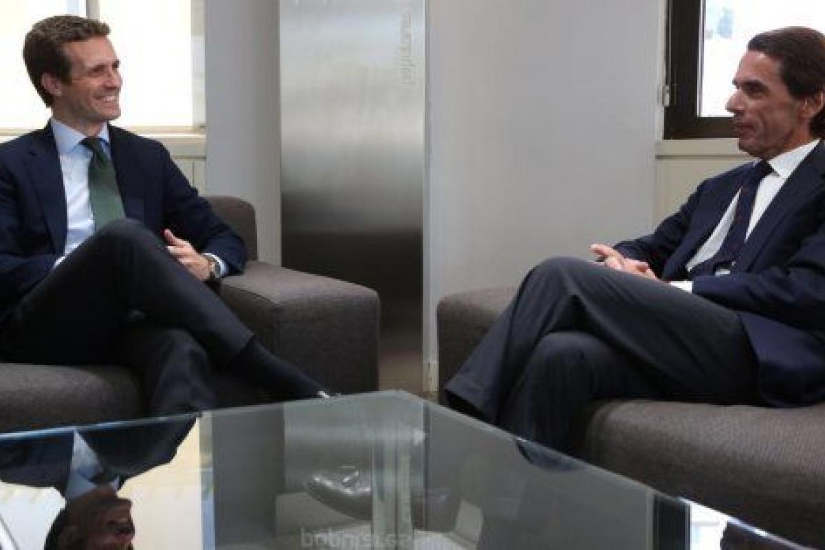 Pablo Casado se ha reunido este martes con José María Aznar en la sede del Partido Popular. El que fuera presidente del Gobierno de España ha regresado a la sede popular de Génova, 13 después de más de dos años sin pisarla y ha departido durante más de dos horas con el nuevo presidente de la formación.