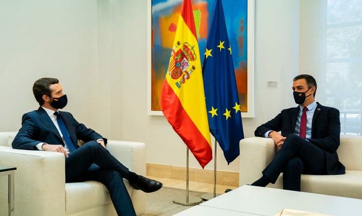 Casado ha llegado sin ningún papel y ha vendido unos supuestos principios de acuerdo con Sánchez para una agencia de reconstrucción económica, reformas legales para limitar la movilidad y un pacto por la Sanidad. Sin nada concreto. Pero lo ha envuelto como si fuera política de Estado.
