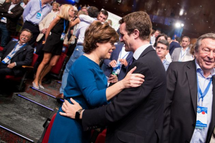 Rajoy miraba desde la primera fila cómo su principal pupila perdía la batalla y ganaba Casado, new version de Aznar. Pero, recuerden, al final es una gran familia el PP con los mismos objetivos: ayer Casado y Rajoy hablaron por teléfono y el expresidente le dijo al joven candidato que siempre tenía en él a un "buen amigo". Además, entre bromas se emplazaron a verse en Santa Pola -allí está destinado su antecesor y Casado tiene una fuerte conexión porque su mujer es alicantina-.