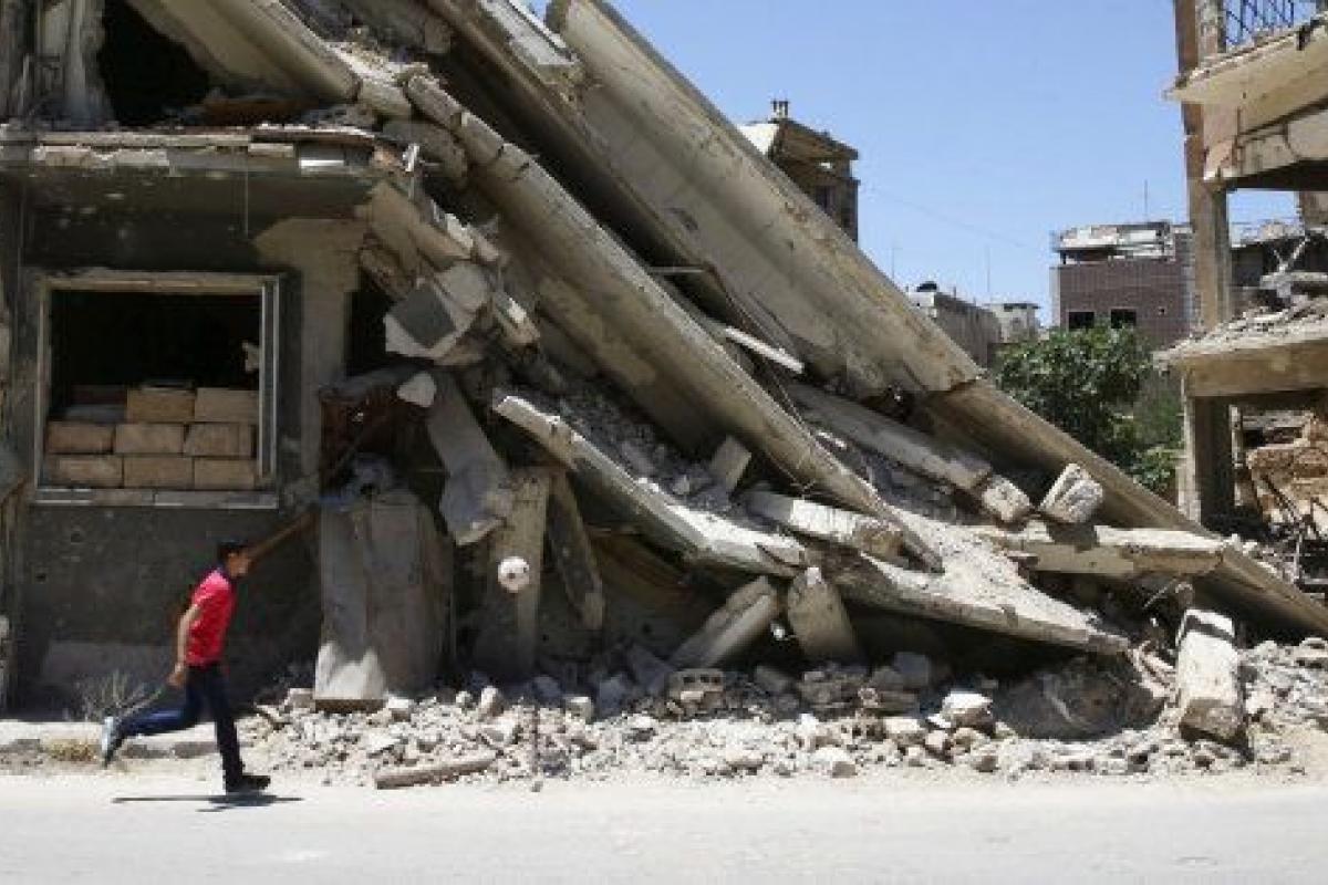 Un niño juega entre los restos de un edificio destrozado en Douma.Bassam Khabieh / REUTERS