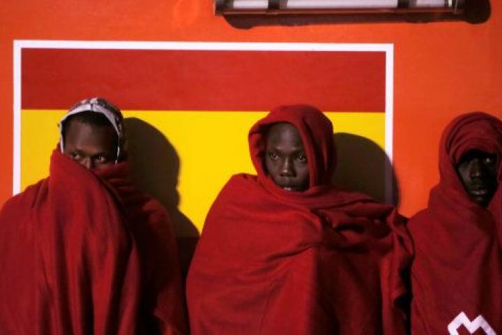 Un grupo de migrantes, arropados en la cubierta del barco de rescate recién atracado al puerto de Málaga, el pasado 29 de noviembre.Jon Nazca / REUTERS