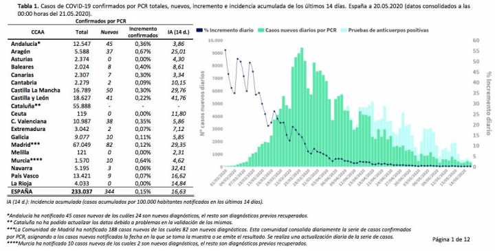 El número de positivos nuevos por PCR desciende este jueves hasta los 344, frente a los 416 de ayer. Sin embargo, en esta cantidad tampoco se han incluido los de Cataluña. A falta de su conteo, son 233.037 los contagios totales.