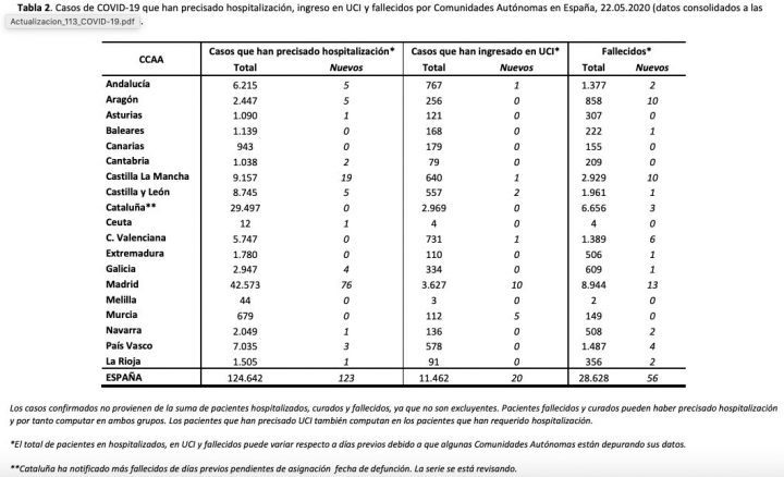 Madrid (13), Aragón (10) y Castilla La-Mancha (10) lideran el listado de fallecidos en las últimas 24 horas. Y hay seis comunidades (Asturias, Canarias, Cantabria, Ceuta, Melilla y Murcia) que no han registrado ningún muerto.