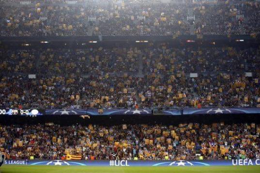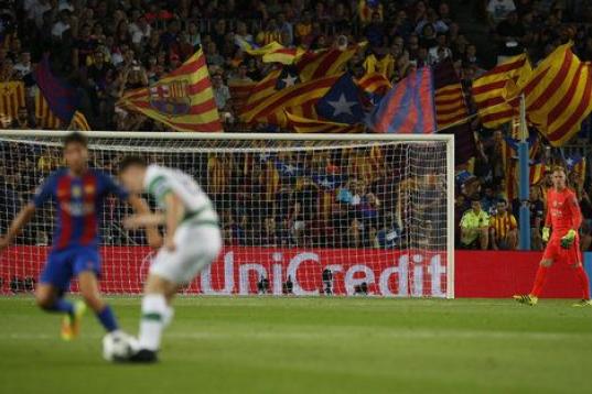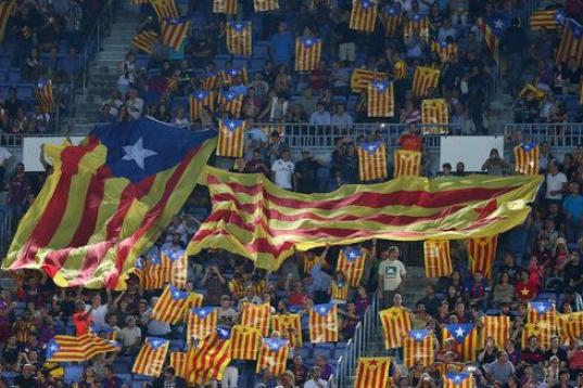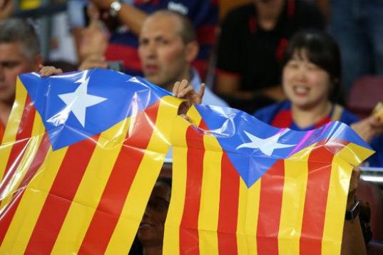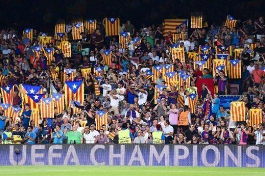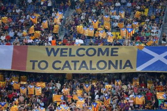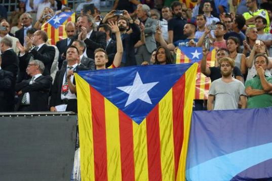 Según informa La Vanguardia, se trata de los Castellers de Vlafranca, que han realizado una actuación en medio de la pista en el que una de las torres ha sacado una bandera de Estados Unidos y la otra, una estelada.