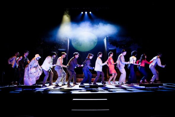 Situación que permite el vodevil, el engaño, el truco, la truculencia, el chiste y la comedia que el director llena de música popular italiana, éxitos del pop del siglo XX. Una música que el espectador conoce bien al haberla oído en la radio o en la tele. Éxitos bailables, coreografiables y cantables, de hecho, dan ganas de hacerlo en las butacas, como si se asistiese a un sing along o karaoke teatral. Por tanto, exige un elenco que sepa decir el verso mientras canta, baila y toca instrumentos. Un elenco joven y lleno de energía, de fuerza, que encabeza Paula Iwasaki como Julia, la Julí o que en italiano se dice Yulí.