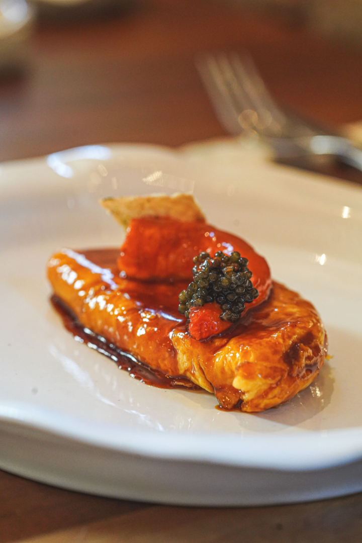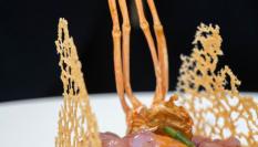 Uno de los pases culmen, sin duda, fue esta tortilla no vaga con alistado, caviar y jugo de ave. Completo, juega con un mar y montaña, acompañado de una tortilla que pone en juego todo su sabor, además del aporte de salinidad que da el caviar. No es un plato que se pueda definir como redondo, pero qué delicia.