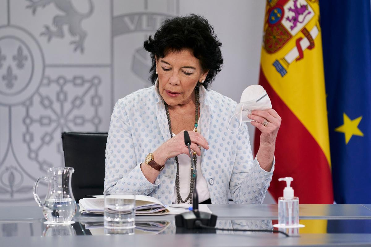 La ministra de Educación y Formación Profesional, Isabel Celaá, ha puesto en duda que los alumnos puedan ir sin mascarilla en el patio de los colegios a partir de septiembre, posibilidad que apuntó recientemente la Comunidad de Madrid.