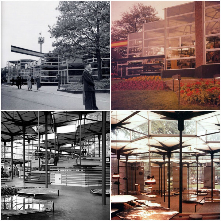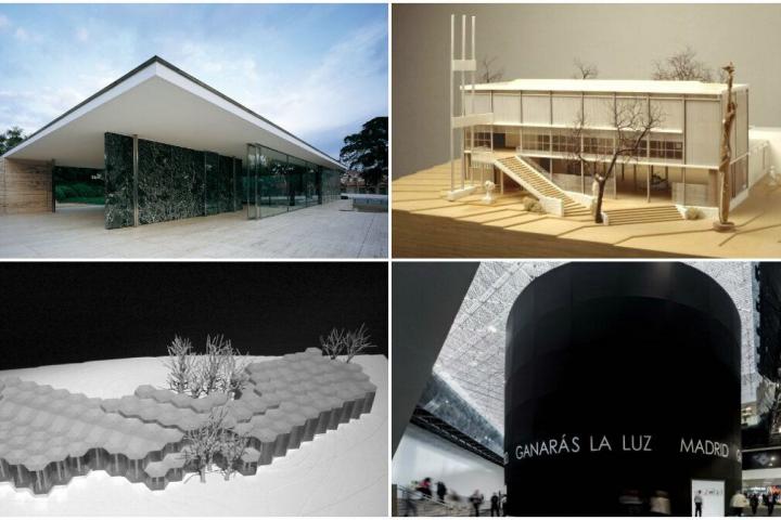 Hay referentes muy cercanos de este tipo de creaciones, bien porque los tenemos aquí, a mano, o bien por recientes en nuestra memoria. Fueron, como todos, concebidos como arquitectura efímera: Pabellones como el Alemán de Mies Van Der Rohe en Barcelona (Exposición Universal 1929), el de La República de Josep Lluís Sert en París (Exposición Universal 1937), el de España de Corrales y Molezún en Bruselas (Exposición Universal 1958), y el de Madrid de Alberto Campo Baeza en México (Feria Internacional del Libro, Guadalajara, México 2017).