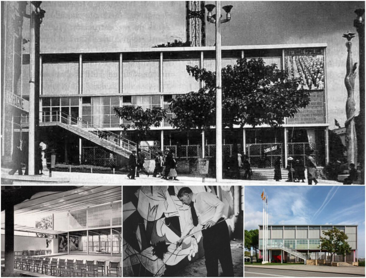 * El Pabellón Alemán de la exposición Universal de Barcelona de 1929 diseñado por Mies Van Der Rohe fue desmantelado, sus partes metálicas vendidas in situ y el mármol transportado de vuelta a Alemania para ser reutilizado o vendido. (En los años 80 fue construida una réplica en su ubicación actual en Barcelona). El Pabellón de La República en París de 1937 de Josep Lluís Sert, reconstruido en Barcelona, funciona como biblioteca, sala de exposiciones y donde, al visitarlo, puede verse colgada la réplica del Guernica ocupando el lugar donde fue colgado el original, el lugar donde se vio por primera vez en su historia esta obra de Picasso. El Pabellón de España en Bruselas de 1958 de Corrales y Molezún, reconocido con el primer premio de arquitectura en la expo, medalla de oro, compitiendo con el Atomium, hoy símbolo de la ciudad de Bruselas, fue desmontado, trasladado y reconstruido, alterando su configuración inicial, y permanece abandonado y corroído en un rincón del antiguo reciento ferial de Madrid (en la Casa de Campo). El Pabellón de Madrid en la feria Internacional de Libro de Guadalajara, México, de 2017 de Alberto Campo Baeza se donó a la Universidad de Guadalajara, México, con el propósito de instalarlo en el Centro de Artes Escénicas de la UdeG, en Zapopan, frente a la Biblioteca Pública del Estado, con el nombre de Foro de Madrid.