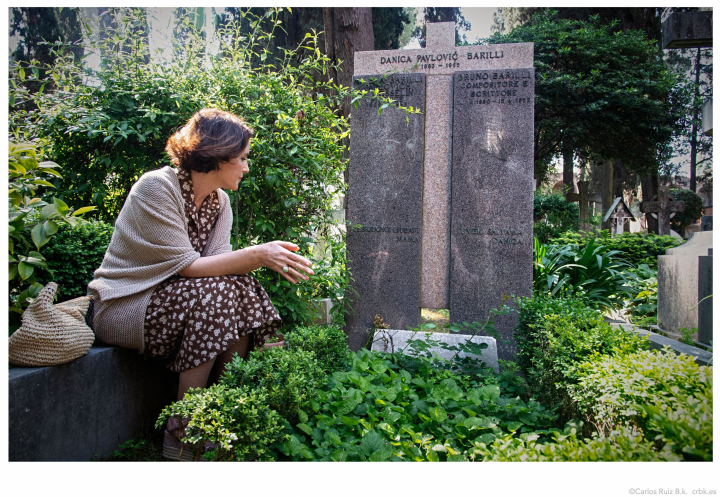 Ángela también pudo. Se lo pidió a su nieta durante un paseo juntas por este lugar. Lo eligió —y no Parma, donde está su hija Caterina, o Padua, con su madre Elvira— porque aquí descansan tres de los miembros de la familia Barilli que más admiraba: el escritor y compositor Bruno Barilli, la princesa serbia Danitza Pavlovic-Barilli y la hija de ambos, Milena Pavlovic Barilli, que fue diseñadora gráfica de Vogue EEUU y que se suicidó en 1945 cuando sólo tenía 35 años.
