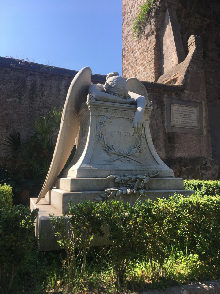 El también llamado cementerio protestante de Roma está construido a los pies de la pirámide Cestia, del año 12 a.C., donde se supone que hay enterramientos de la época, aunque son otros muy posteriores los que llaman la atención del visitante.