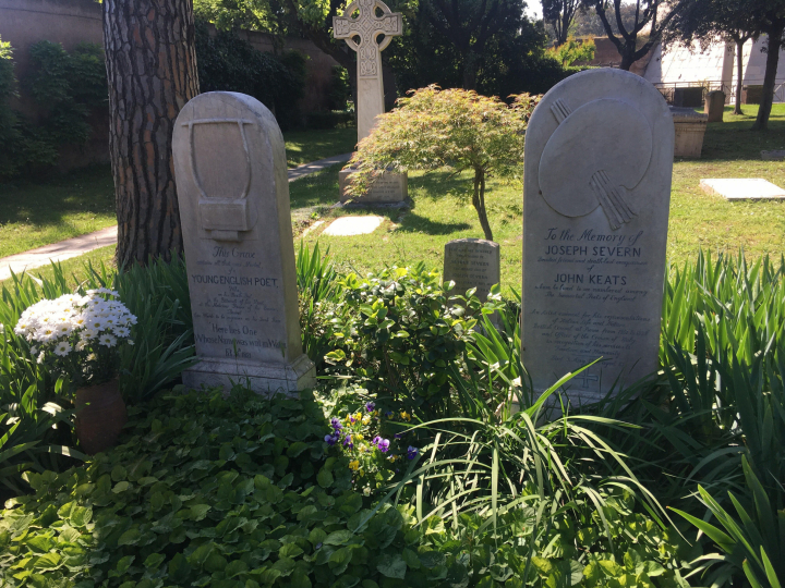 Como descorazonadora es la historia del poeta John Keats, quien llegó a Roma en 1820 para curarse de tuberculosis y que falleció un año después con 25 años. Su amigo, el pintor inglés Joseph Severn, lo acompañó en este primer viaje —se instalaron juntos en una casa en la plaza de España— y decidió hacerlo también en el segundo y último.