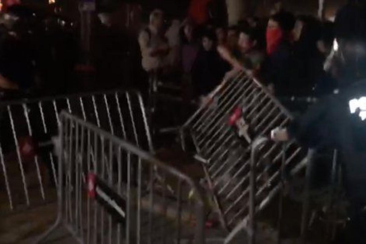 Unas 200 personas han tirado al suelo vallas al grito 'Buch dimisión' y 'Desobedeced o dimitid' en el lugar donde se han hecho los discursos finales.