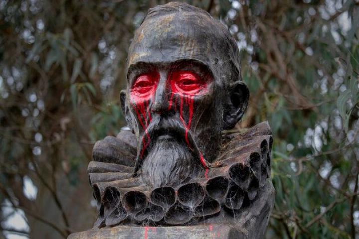 Estatua de Cervantes atacada. MediaNews Group/The Mercury News via Getty Images via Getty Images