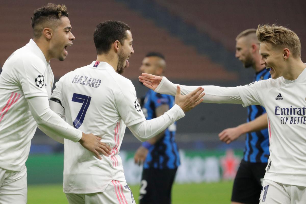 El alemán Toni Kroos bajó su posición hasta la línea de centrales para construir juego, Odegaard fluctuó entre líneas y conectó con fluidez con Hazard, por la banda izquierda, y con Luka Modric. Nachó desactivó por completo a la delantera interista en la que apenas se notó el belga Romelu Lukaku.