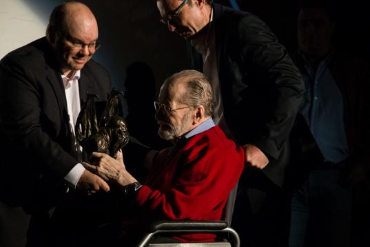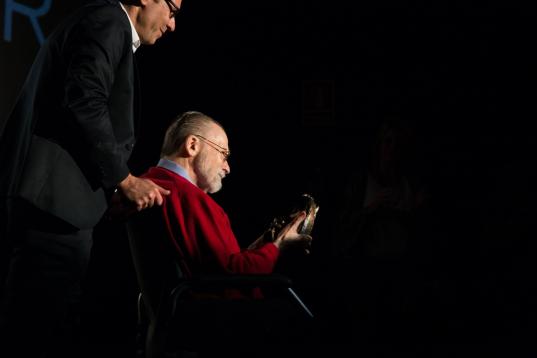 Después de esto, uno de sus acompañantes se lleva el micrófono. "Me lo ha quitao", se queja el cineasta. Abandona la sala en su silla de ruedas, como entró; como un titán, aclamado con aplausos, una ovación, gente de pie. En su última aparición, ha disparado la imaginación de todos, como siempre hizo.