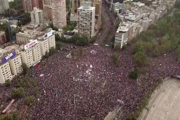 La masiva concentración en la Plaza Italia, punto neurálgico de esta ola de protestas que abarca a todo el país, fue inédita en la historia democrática de Chile y solo es comparable a las movilizaciones de 1988 contra la dictadura del general Augusto Pinochet (1973-1990).