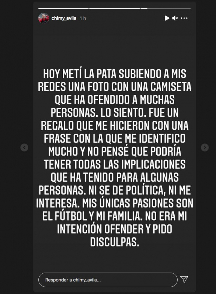 Fotografía por la que Ávila se ha disculpado a través de sus stories en Instagram, donde ha colgado el siguiente mensaje: